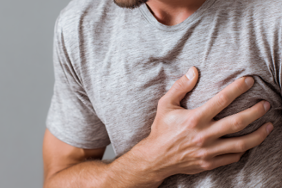 2) 가슴 통증 또는 호흡 곤란